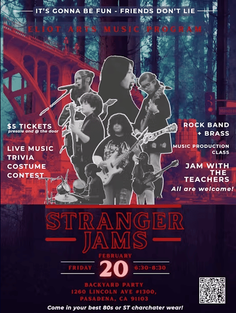 A high-energy night of live music, trivia, rock band + brass performances, a music production showcase, and an epic chance to jam with EAM teachers + Stranger Things costume contest!!