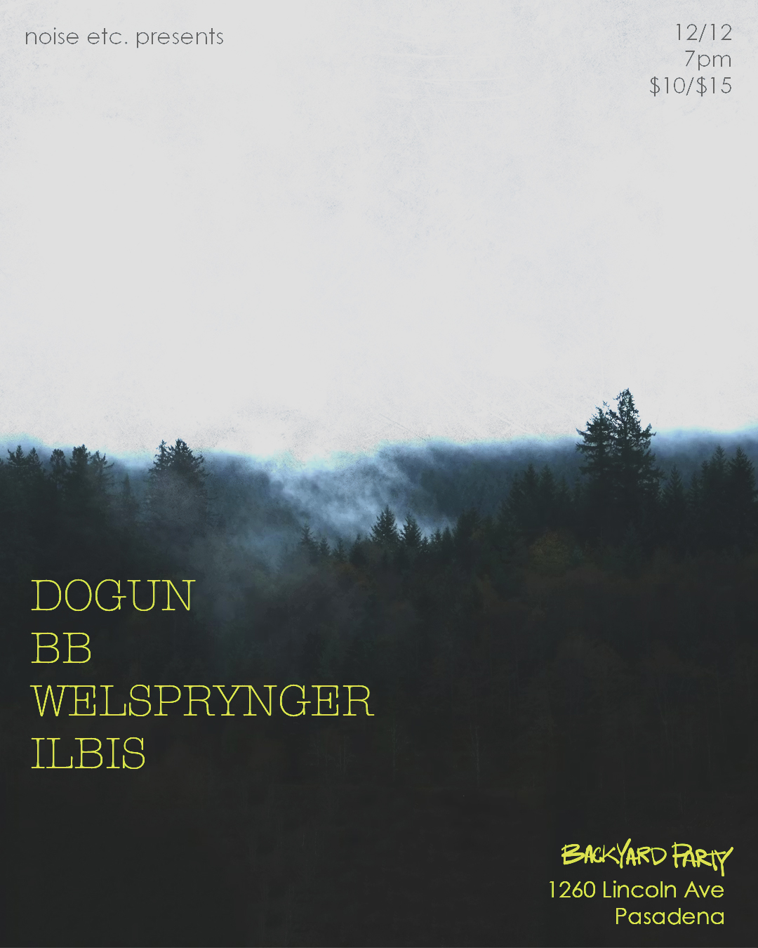 lbis, Welsprynger, BB , and Dogun. Doors @ 7, music at 7:15. $10 PRESALE TICKETS, $15atd
